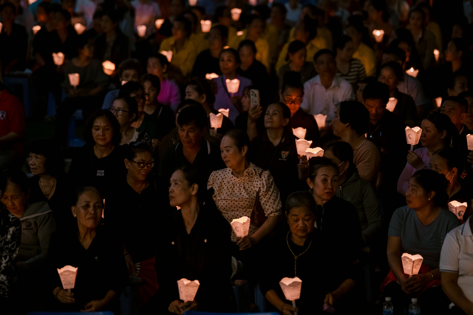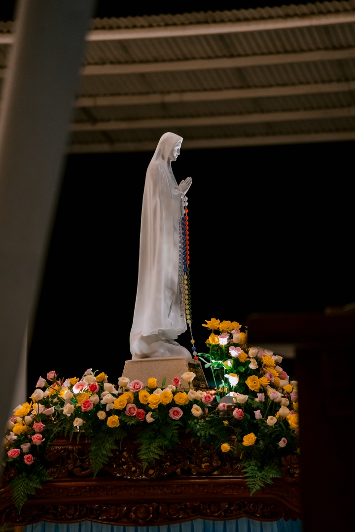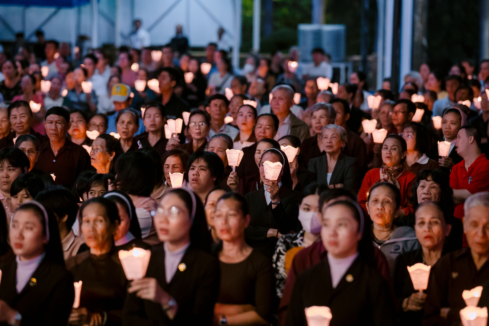 Tối ngày 12/11, vì trời mưa lớn nên cộng đoàn không thể rước kiệu Đức Mẹ như thường lệ mà cùng nhau lần chuỗi Mân Côi và chầu Thánh Thể do cha Gioan Trần Lữ Đô - Linh hướng Hiệp hội Tín hữu Mến Thánh Giá Phan Thiết, chủ sự. Dù người tham dự không đông như dịp hành hương tháng 10, nhưng ánh nến lung linh, lời kinh hòa cùng tiếng hát dâng lên Mẹ của cộng đoàn phụng vụ vẫn tạo nên một bầu khí linh thiêng, chan chứa niềm tin và hy vọng.