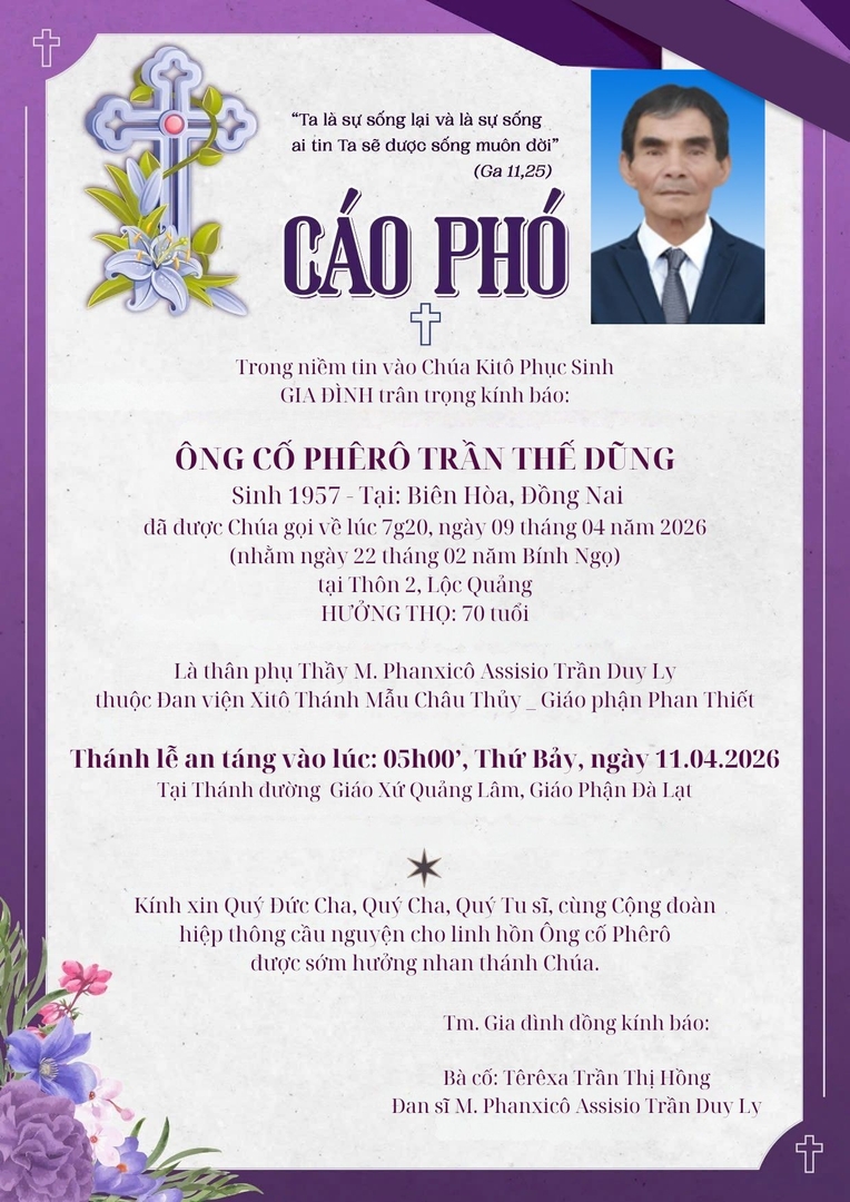Cáo phó _ Ông Cố Phêrô Trần Thế Dũng