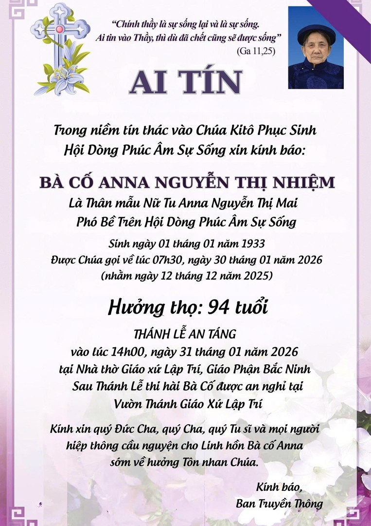 Cáo Phó Bà Cố Anna Nguyễn Thị Nhiệm