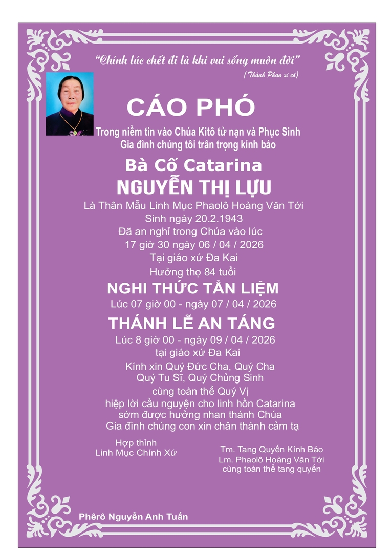Cáo phó Bà cố Catarina Nguyễn Thị Lựu
