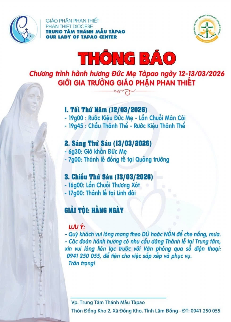 Chương Trình Hành Hương Đức Mẹ Tàpao Ngày 12 & 13/03/2026 Giới Gia Trưởng Giáo Phận Phan Thiết
