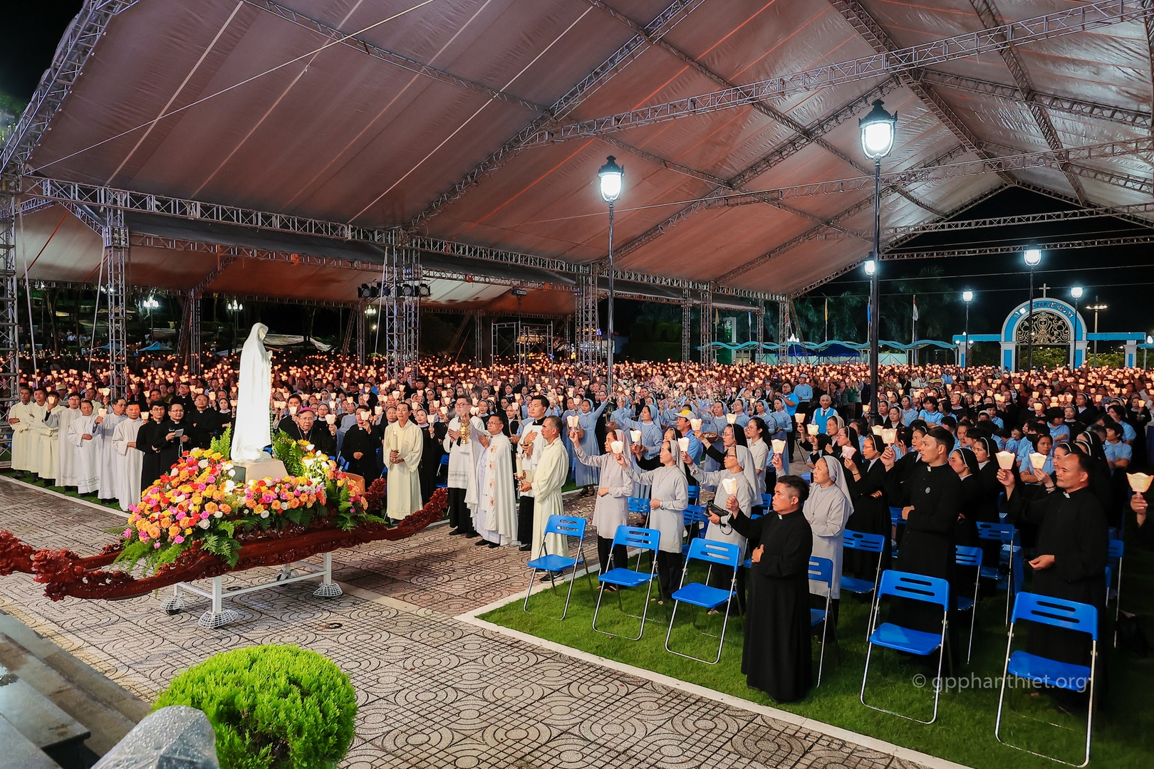 Lúc 19 giờ, giữa núi rừng Tàpao, hàng ngàn ngọn nến được thắp lên, lung linh tỏa sáng trong tiếng hát và lời kinh. Đêm cầu nguyện – diễn nguyện tôn vinh Đức Mẹ mở ra một bầu khí linh thiêng và sốt sắng.