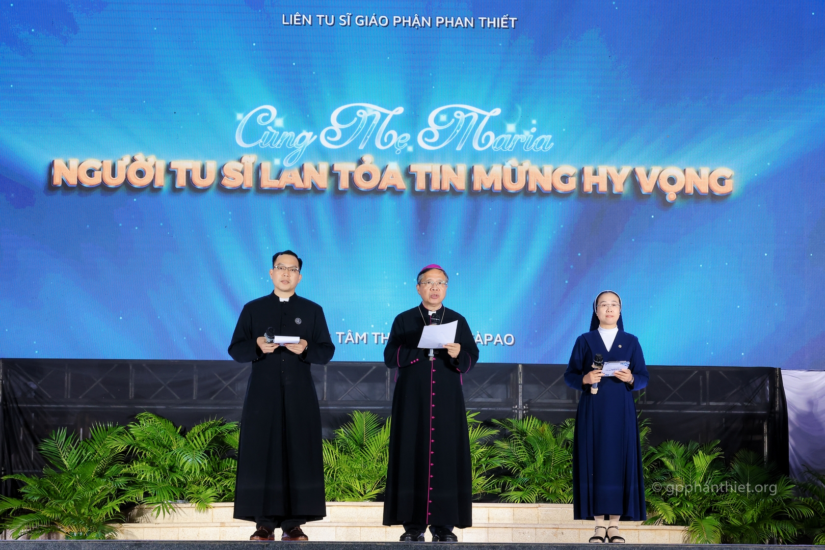 Đức Cha Giuse Đỗ Mạnh Hùng, Giám mục Giáo phận, hiện diện và khai mạc chương trình với lời nhắn gửi tâm tình: "Tôi ước mong qua buổi diễn nguyện này, mọi người khám phá ra vẻ đẹp của đời sống thánh hiến và dấn thân cho công cuộc loan báo Tin Mừng mà Giáo hội đang mời gọi”.