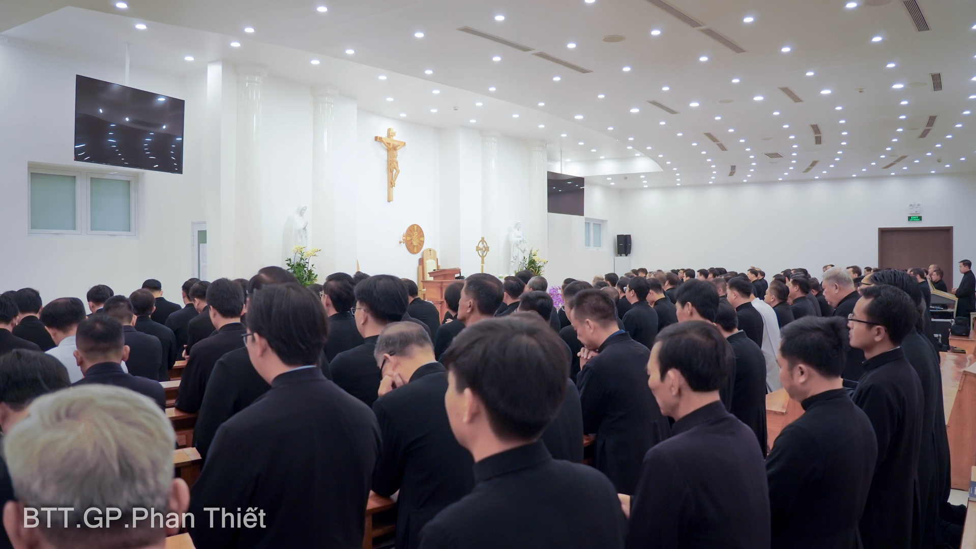 Khép lại ngày đầu tiên của tuần tĩnh tâm, quý Đức cha, quý cha và quý thầy cùng sốt sắng Chầu Thánh Thể và cử hành Kinh Tối, xin Chúa chúc lành cho hành trình tâm linh của những ngày kế tiếp.