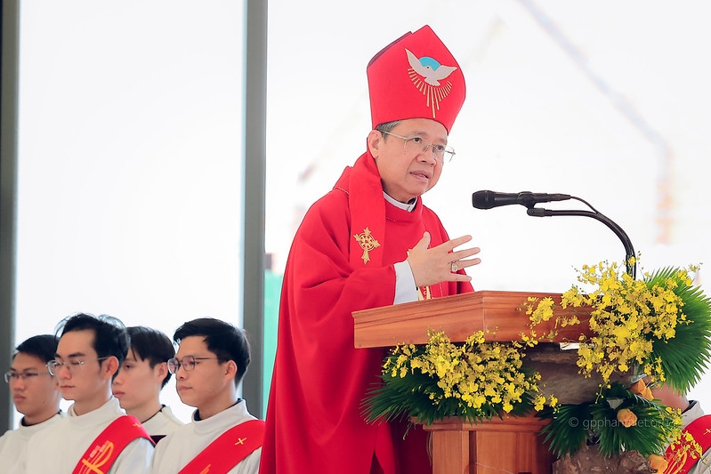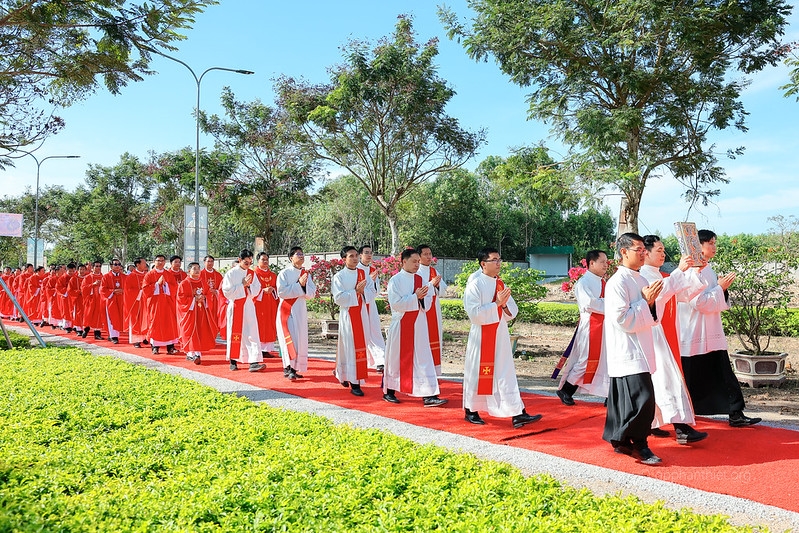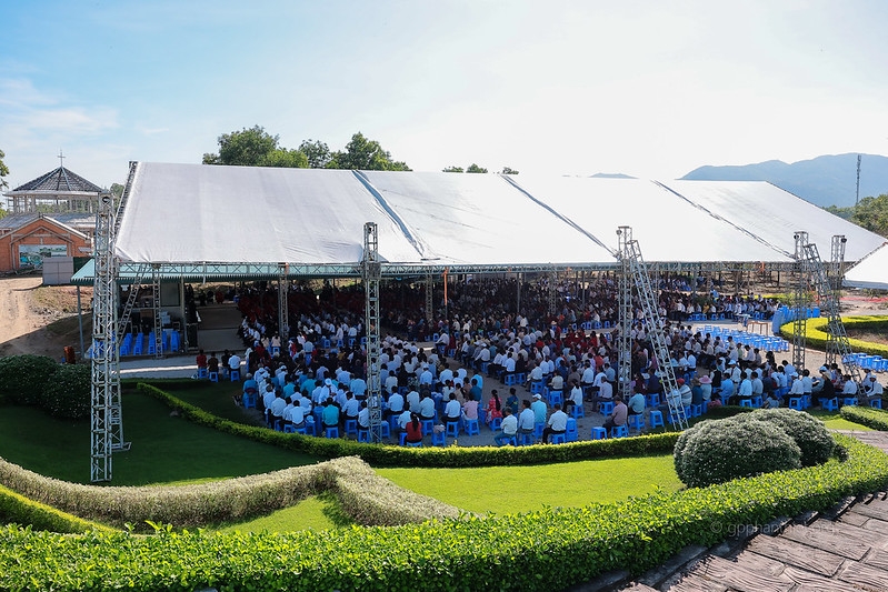 WGPPT – Sáng ngày 24.11.2025, trong bầu khí trang nghiêm và sốt sắng, cộng đoàn Dân Chúa Giáo phận Phan Thiết đã quy tụ trên đồi Thánh Giuse để long trọng mừng Lễ Các Thánh Tử đạo Việt Nam – Thánh Anrê Trần An Dũng Lạc và các bạn tử đạo. Địa điểm cử hành mang ý nghĩa đặc biệt, bởi đồi Thánh Giuse được định hướng là nơi an dưỡng dành cho các linh mục hưu giáo phận trong tương lai – một không gian thấm đẫm lời cầu nguyện và chứng tá thinh lặng của đời linh mục.