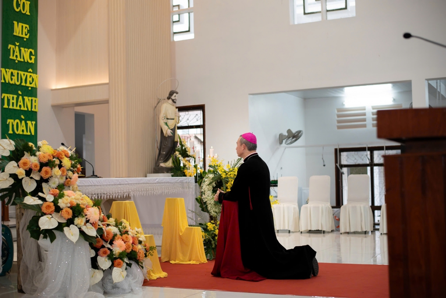 Tiếp đến, Đức cha Đaminh có lời cảm ơn đến Đức Cha Giuse, Cha tổng đại diện, quý Cha, quý tu sĩ nam nữ và cộng đoan dân chúa, cách đặc biệt ngài cảm ơn Cha quản xứ Phêrô Nguyễn Văn Bình và những ai đã hy sinh tất cả mọi việc để làm nên thánh lễ tạ ơn thật sốt sắng.