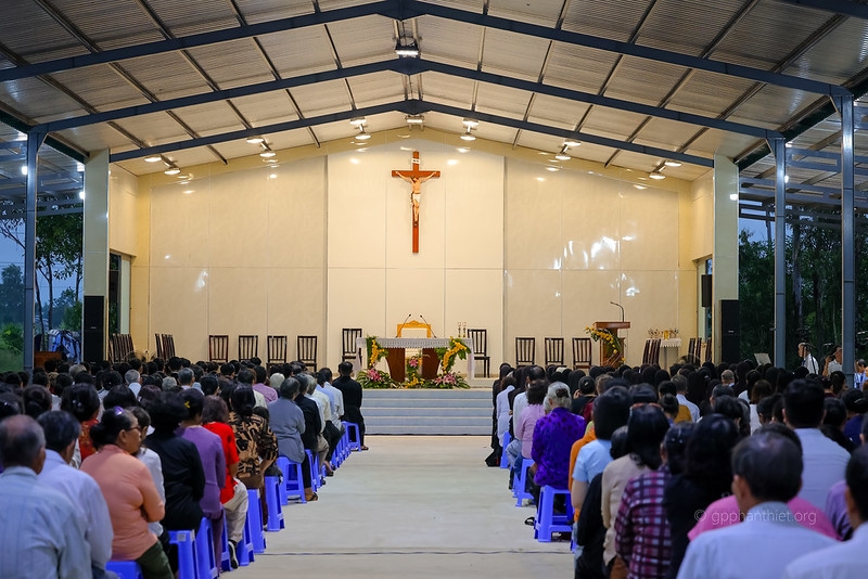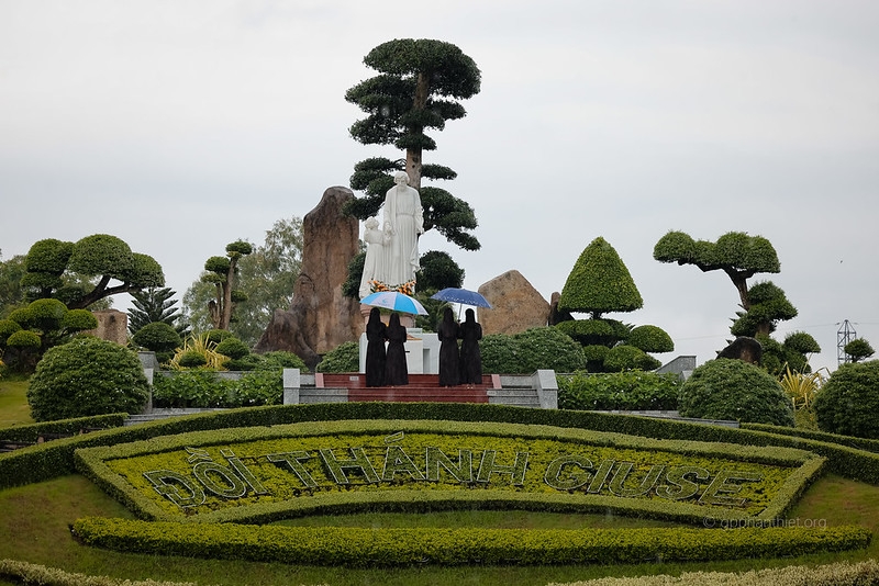 Dù thời tiết có những cơn mưa lất phất nhưng dòng người gồm quý linh mục, tu sĩ, chủng sinh và cộng đoàn khắp nơi tuôn về khuôn viên đồi Thánh Giuse mỗi lúc mỗi đông để cùng hiệp dâng thánh lễ kính Thánh cả Giuse.