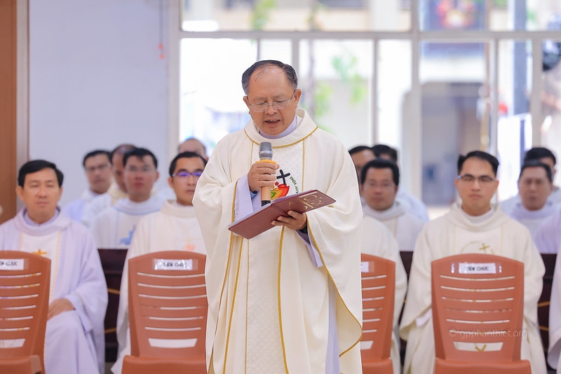 Trong bầu khí thiêng liêng và đầy hy vọng, Đức cha Giuse mời gọi cộng đoàn chiêm ngắm tình yêu “đi bước trước” của Thiên Chúa qua lời Ngài ngỏ với ngôn sứ Giêrêmia: “Trước khi tạo thành ngươi trong dạ mẹ, Ta đã biết ngươi”. Ngài nhắc các tân chức rằng ơn gọi của họ bắt đầu từ ánh nhìn yêu thương của Thiên Chúa trên cuộc đời từng người. Dựa trên thư Êphêsô (4,1–13), Đức cha nhắn nhủ các tân Linh mục hãy sống hiền hậu, nhẫn nại, biết chịu đựng nhau trong đức ái và giữ gìn sự hiệp nhất của Thánh Thần. Ngài cho biết người Linh mục phải là người “đi cùng” với đoàn chiên, là người của hiệp nhất, sự thật và lòng cảm thông.