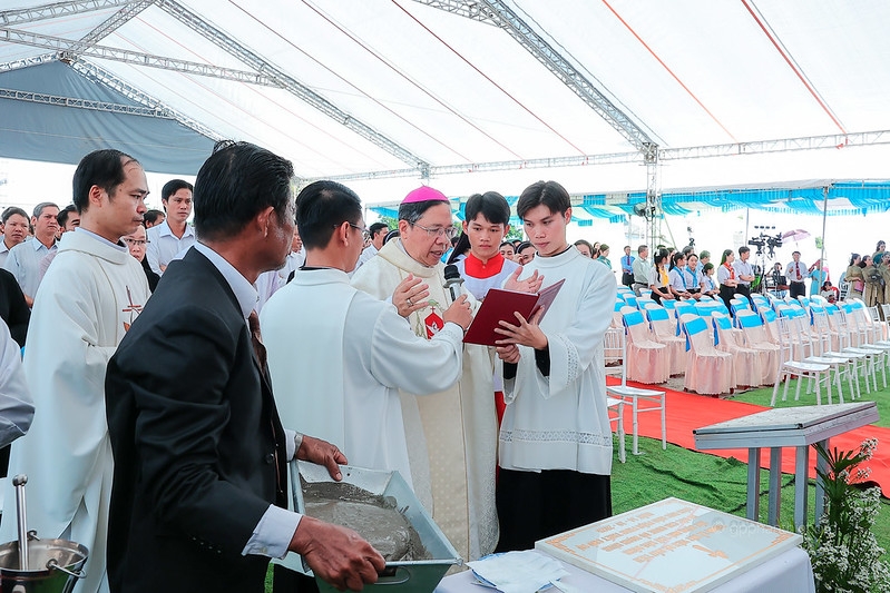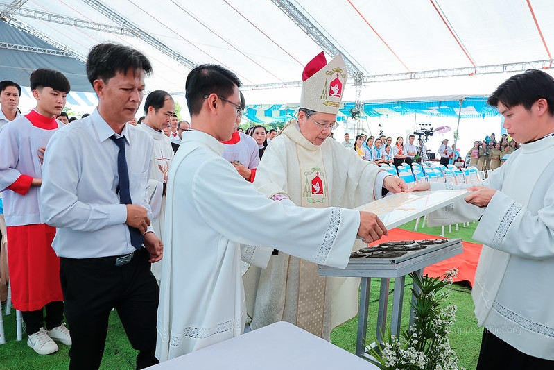 Nghi thức đặt viên đá đầu tiên đã diễn ra trong trang nghiêm và long trọng, cộng đoàn tiếp tục bước vào thánh lễ với tâm trình sốt mến.