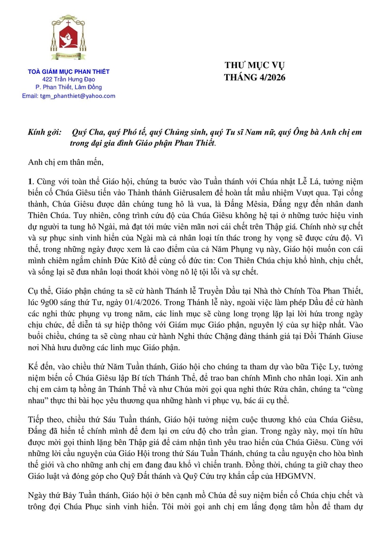 Thư Mục Vụ Tháng 04 năm 2026 - Giáo Phận Phan Thiết