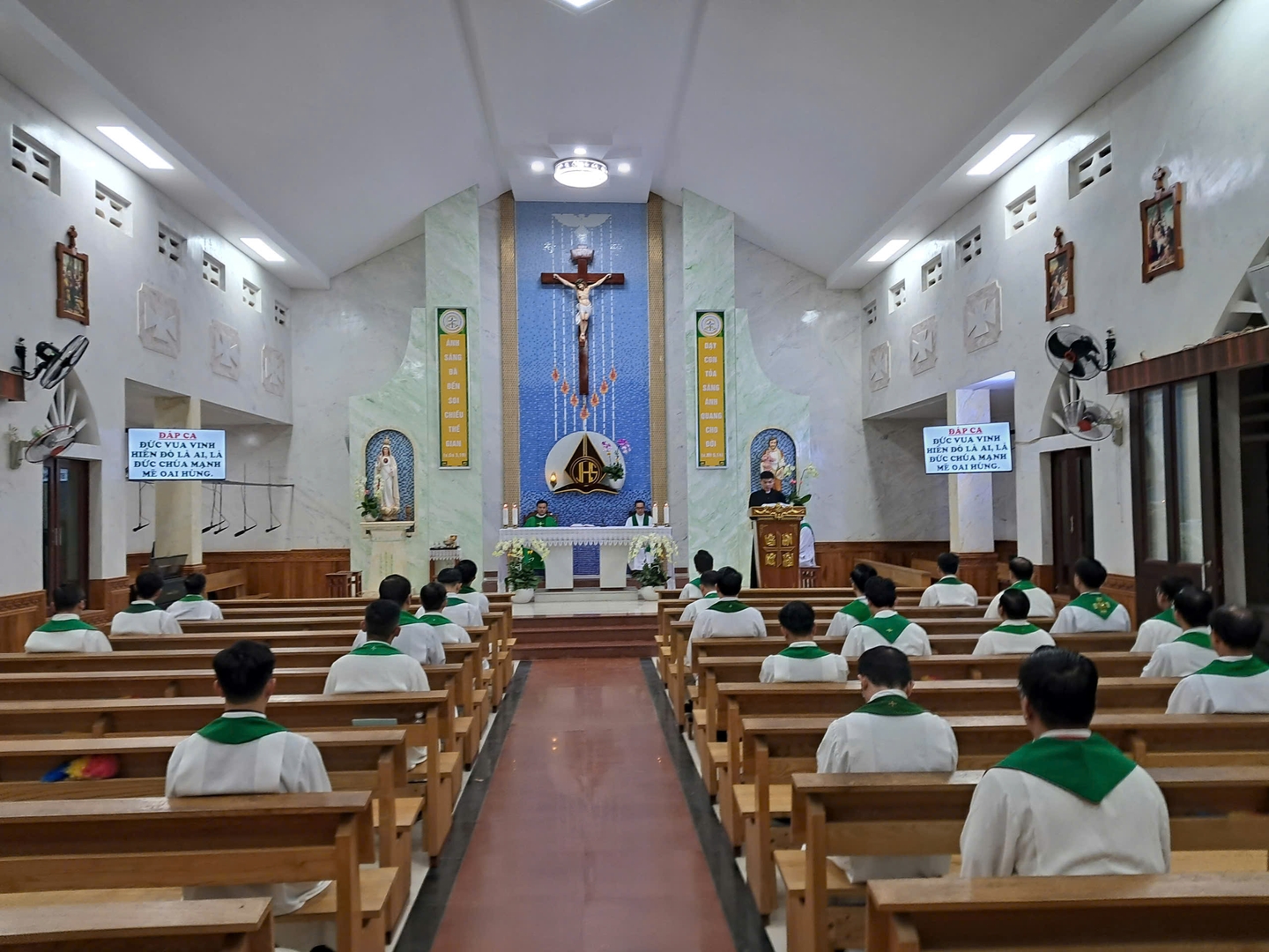 Quý cha cùng đọc Kinh Sáng và hiệp dâng Thánh lễ tại nhà thờ Rạng như dấu chỉ hiệp thông huynh đệ trong Thánh chức Linh mục. Trong bầu khí thánh thiêng của Thánh lễ, quý cha kín múc nơi bàn tiệc Lời Chúa và Thánh Thể sức mạnh thiêng liêng cho hành trình phục vụ Dân Chúa giữa những thách đố của thời đại.